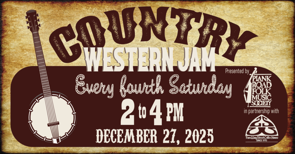 It’s time to get together again and make music! Saturday, December 27, 2025, from 2-4 pm CT, Two Way Street Coffee House and Plank Road Folk Music Society will host another wonderful Country & Western Sing-around and you’re invited to sing and/or play along with us!