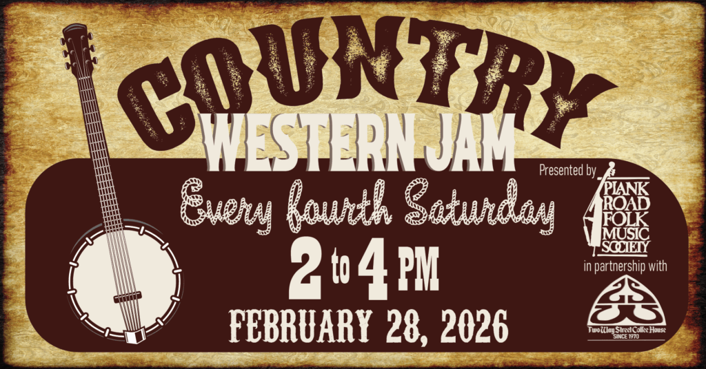 It’s time to get together again and make music! Saturday, February 28, 2026, from 2-4 pm CT, Two Way Street Coffee House and Plank Road Folk Music Society will host another wonderful Country & Western Sing-around and you’re invited to sing and/or play along with us!