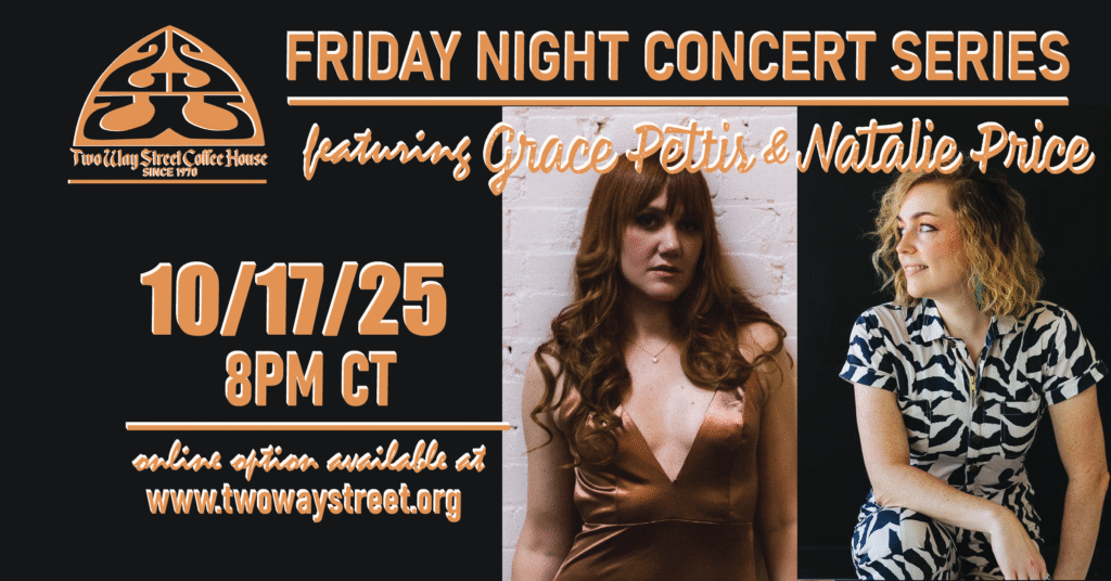 On Friday, October 17, 2025 Two Way Street Coffee House Friday Night Concert Series presents Grace Pettis and Natalie Price.